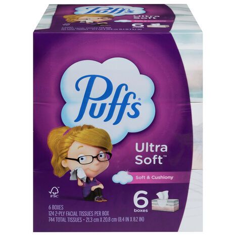 Puffs 2-Ply Facial Tissues - 6 Boxesx