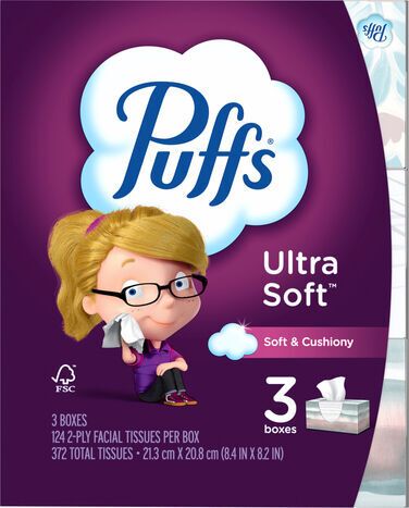 Puffs 2-Ply Soft & Cushiony Facial Tissues - 3 x 124 Tissue Boxes