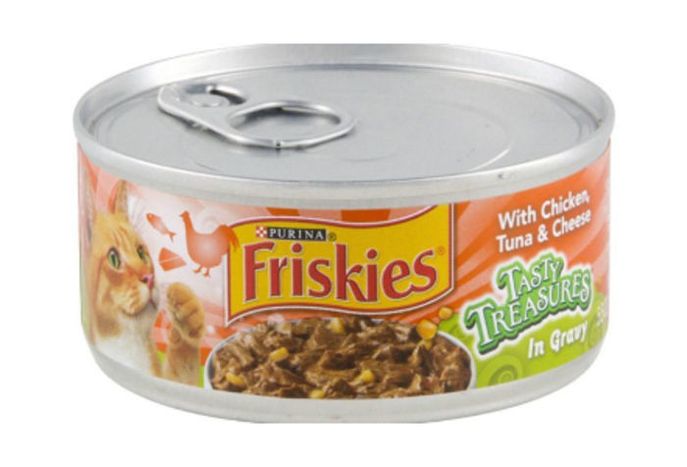 Purina Friskies Tasty Treasures Cat Food, W / Chicken Tuna & Cheese In Gravy - 5.5 Ounces