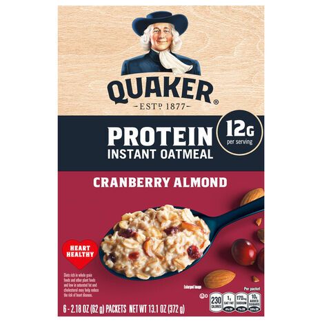 Quaker Protein Cranberry Almond Instant Oatmeal - 6 x 2.18 Ounces