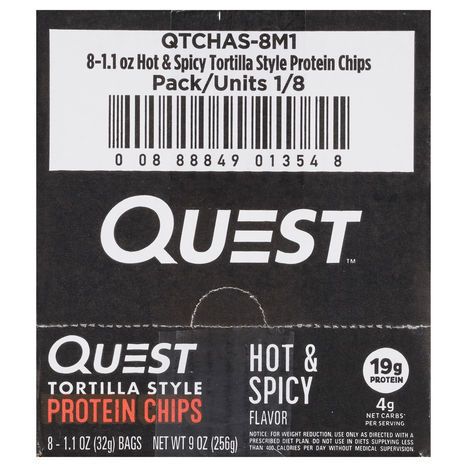 Quest Protein Chips, Hot & Spicy Flavor, Tortilla Style - 8 x 1.1 Ounces