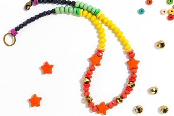 The Rainbow Kit includes a rainbow of colorful beads. The beads within each kit will vary in color and design but always include enough elements to make a necklace with a similar pattern to what is shown here.