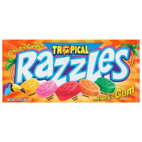 Sugar, Gum Base, Citric Acid, Calcium Stearate, Artificial Flavors, Artificial Colors (FD&C Red 40 Lake, Blue 1 Lake, Yellow 5 Lake, Yellow 6 Lake), BHT (to Maintain Freshness).