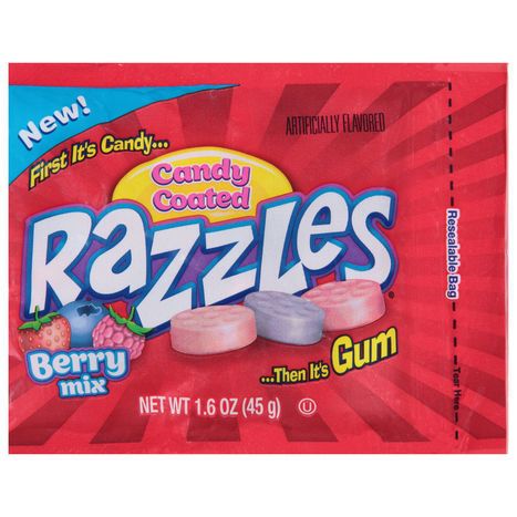 Razzles Gum, Candy Coated, Berry Mix - 1.6 Ounces