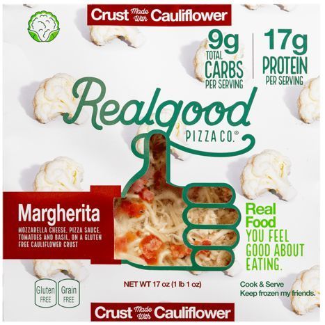 Pizza Crust: (Broccoli, Almond Flour, Mozzarella Cheese [Pasteurized Milk, Cheese Cultures, Salt, Enzymes], Liquid Whole Egg, Parmesan Cheese [Pasteurized Part-Skim Milk, Cheese Culture, Salt, Enzyme], Coconut Flour, Dry Whole Egg, Avocado, Kale, Peas, Salt, Xanthan Gum), Pizza Sauce (Tomato, Olive Oil, Salt, Garlic, Black Pepper, Onion, Oregano, Basil), Mozzarella Cheese (Pasteurized Milk, Cheese Cultures, Salt, Enzymes), Tomatoes, Basil.