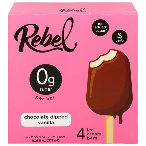 Rebel Ice Cream Bars, Chocolate Dipped Vanilla - 4 x 2.65 Fluid Ounces