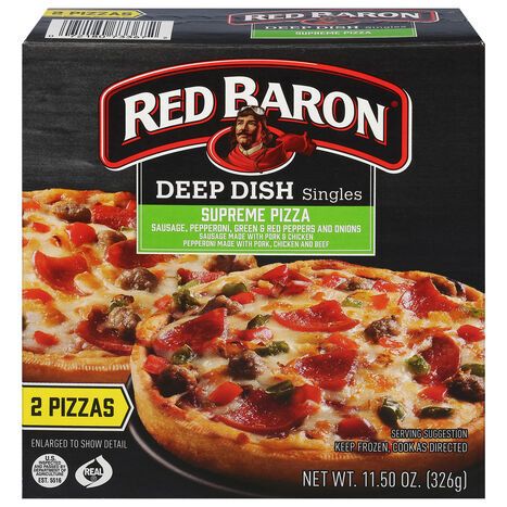 Red Baron Pizza, Deep Dish, Singles, Supreme - 2 Pizzas