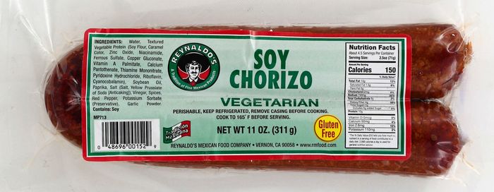 Water, Textured Vegetable Protein (Soy Flour, Caramel Color, Zinc Oxide, Niacinamide, Ferrous Sulfate, Copper Gluconate, Vitamin A Palmitate, Calcium Pantothenate, Thiamine Mononitrate, Pyridoxine Hydrochloride, Riboflavin, Cyanocobalamin), Soybean Oil, Paprika, Salt (Salt, Yellow Prussiate of Soda [anticaking]), Vinegar, Spices, Red Pepper, Potassium Sorbate (Preservative), Garlic Powder.
