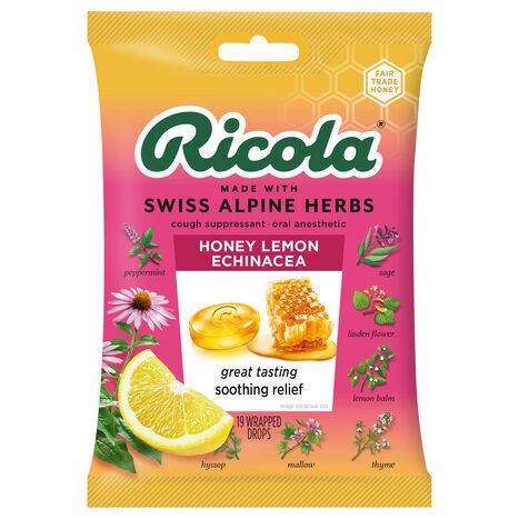 Ricola Wrapped Drops Honey Lemon Echinacea Cough Suppressant - 19 Drops