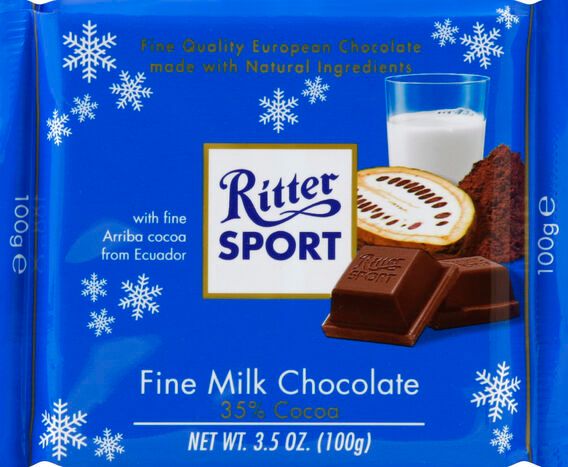 Ritter Sport Fine Milk Chocolate, 35% Cocoa - 3.5 Ounces