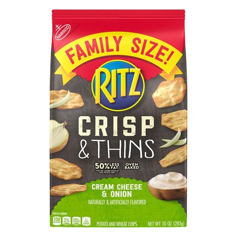 Ritz Potato and Wheat Chips, Cream Cheese & Onion, Crisp & Thins, Family Size! - 10 Ounces