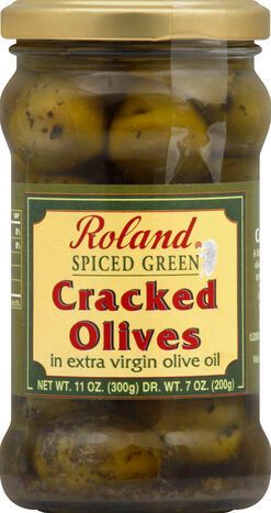 Roland Olives, in Extra Virgin Olive Oil, Cracked, Spiced Green - 11 Ounces