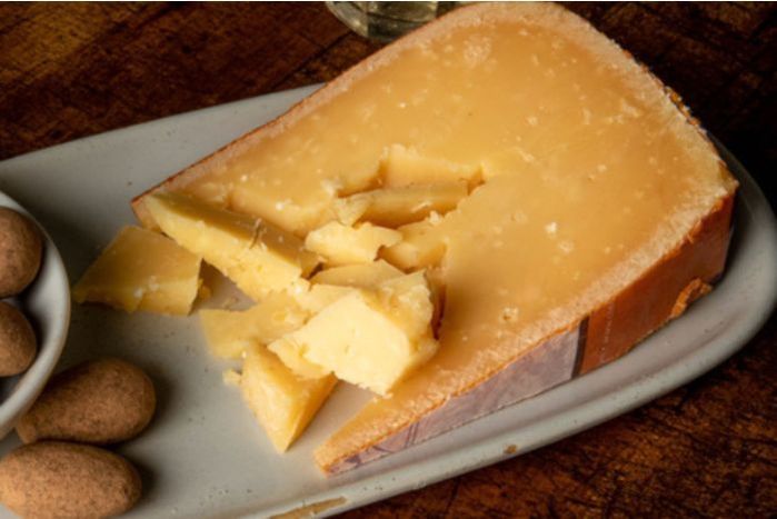 Roomano is similar to an aged Gouda, but is technically from the cheese family 'Proosdy'. These have lower butterfat than the required 48% for Gouda (this one has 45%) and their edges are noticeably sharper. This cheese defines the term 'flavor-dense.' Made of pasteurized cow's milk and aged up to 4 years, Roomano has an intense flavor of sweet-salty butterscotch. The granite paste is peppered with white flecks - calcium lactate crystals that form during extended aging - lending an assertive crunch. You'll need a heavy knife (and perhaps some protective goggles) to breach this rewarding fortress of cheese, and a nice brown ale to wash it down