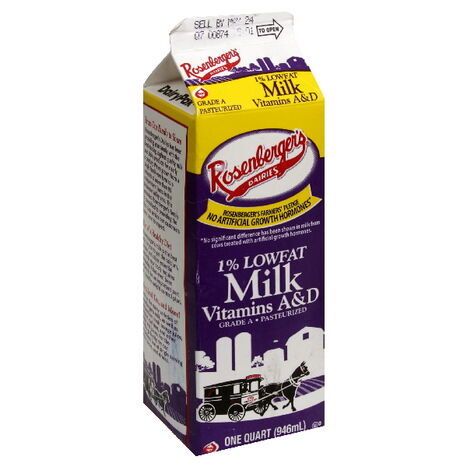 Rosenberger's Milk, Lowfat, 1% Milkfat - 1 Quart