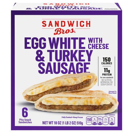 Sandwich Bros. Pita Snack Sandwiches, Egg White & Turkey Sausage with Cheese - 6 Sandwiches