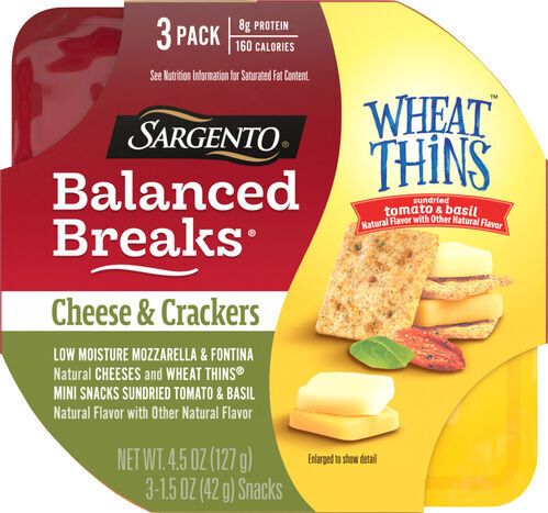 Sargento Balanced Breaks, Cheese & Crackers, Low Moisture Mozzarella & Fontina Cheeses/Wheat Thins Mini Snacks Sundried Tomato & Basil, 3 Pack - 3 x 1.5 Ounces