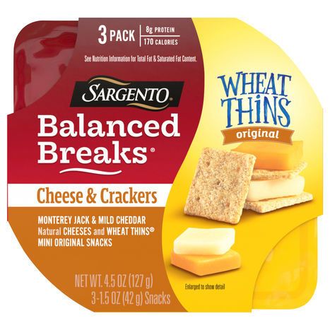 Sargento Balanced Breaks, Cheese & Crackers, Monterey Jack & Mild Cheddar Cheeses/Wheat Thins Mini Original Snacks, 3 Pack - 3 x 1.5 Ounces