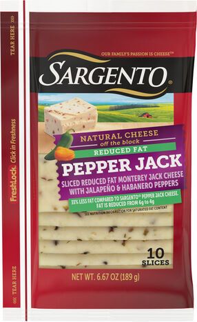 Sargento Sliced Cheese, Natural, Reduced Fat, Pepper Jack - 10 Slices