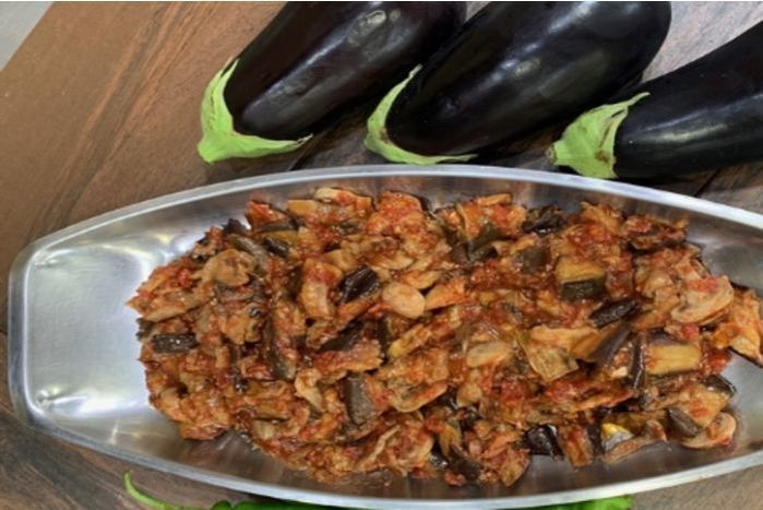 Sautéed Eggplant W/Roasted Garlic, Mushroom & Tomatoes