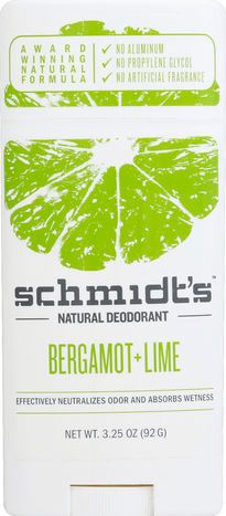Schmidt's Deodorant, Natural, Bergamot + Lime - 2.65 Ounces