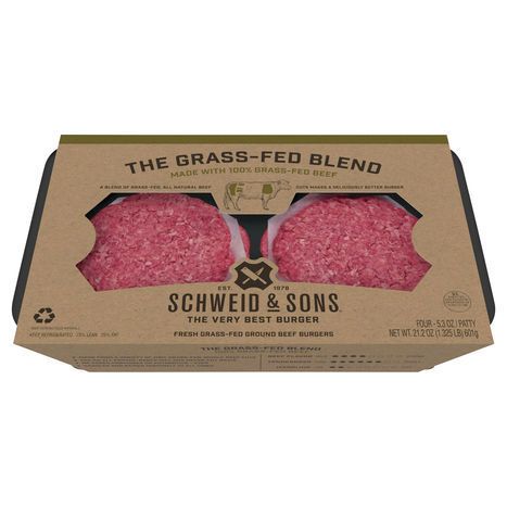 Schweid & Sons Beef Burgers, Fresh Ground, 75%/25%, The Grass-Fed Blend - 4 x 5.3 Ounce Patties