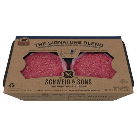 Schweid & Sons Beef Burgers, Fresh Ground, 75%/25%, The Signature Blend - 4 x 5.3 Ounce Patties