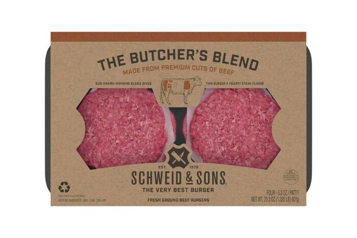 Schweid & Sons Beef Burgers, Fresh Ground, 80%/20%, The Butcher's Blend - 4 x 5.3 Ounce Patties
