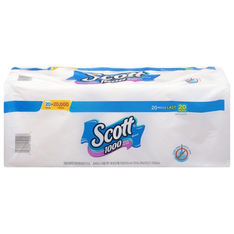 Scott Bathroom Tissue, Unscented, One-Ply - 20 Rolls