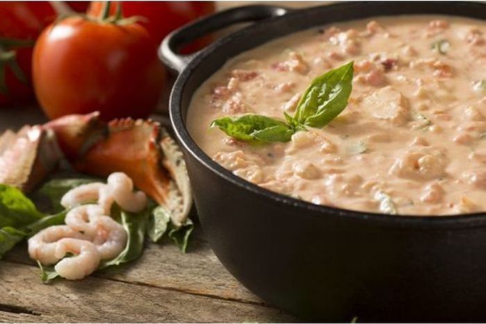Delectable medley of Pacific cod, northwest salmon, Oregon bay shrimp, flavored with fresh basil and simmered in a creamy tomato-based broth.