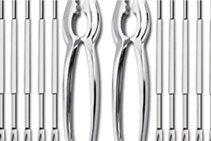 This seafood tools set includes 2x Zinc alloy Crab/Lobster crackers and 10x Stainless steel forks knowns as seafood doohickeys.