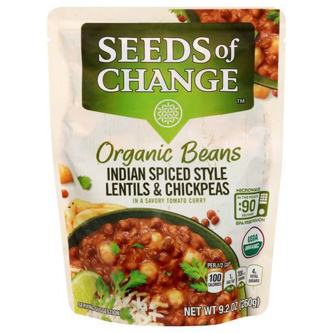 Seeds of Change Beans, Organic, Indian Spiced Style Lentils & Chickpeas - 9.2 Ounces