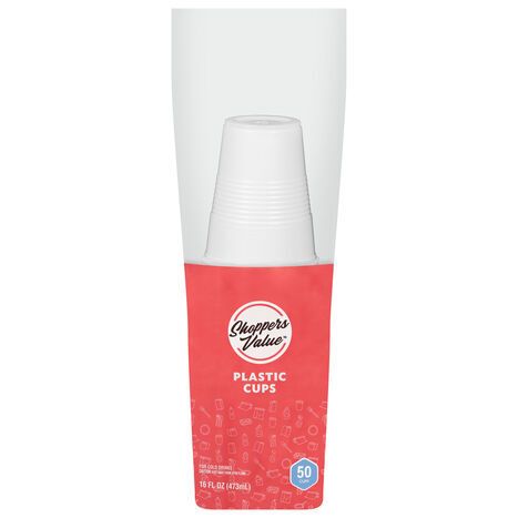 Shoppers Value Plastic Cups, 16 Fluid Ounce - 50 Cups