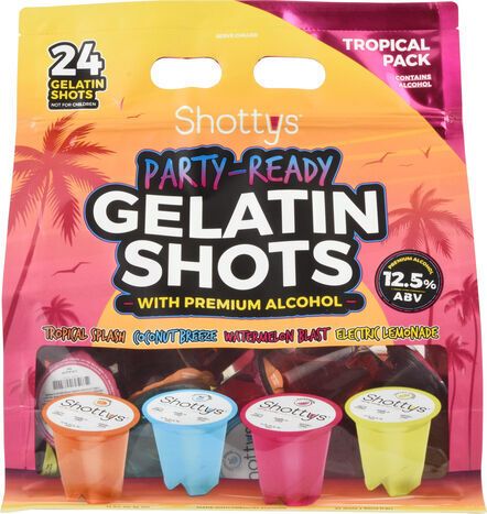 Shottys Gelatin Shots, Party-Ready, Tropical Pack - 24 x 50 Milliliters