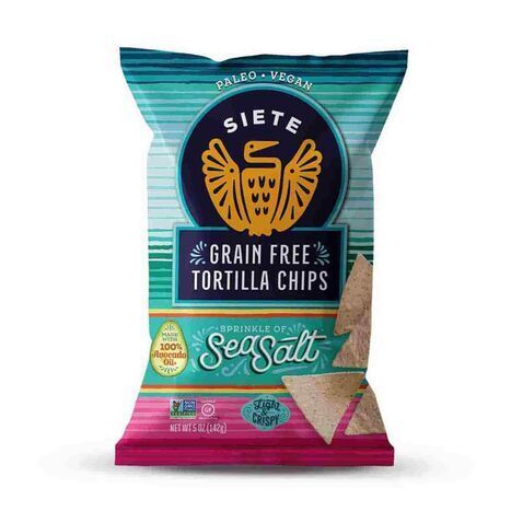 Siete Foods is a family-owned company that creates grain-free versions of classic Mexican-American food staples. These non-GMO, gluten-free tortilla chips are made with cassava and coconut flours and seasoned simply with sea salt. Enjoy them with salsa, layered in nachos, or straight from the bag. Cassava Flour, Avocado Oil, Coconut Flour, Chia Seed, Sea Salt.