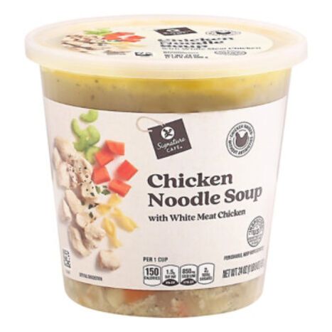 Chicken Stock, Chicken (White Meat Chicken, Water, Rice Starch, Salt), Celery, Carrots, Enriched Pasta (Semolina, Eggs, Egg Whites, Niacin, Ferrous Sulfate, Thiamine Mononitrate, Riboflavin, Folic Acid), Onions, Contains 2% or Less of: Chicken Fat, Natural Flavor, Sea Salt, Modified Corn Starch, Cultured Dextrose, Garlic, Tomato Concentrate, Sugar, Yeast Extract, Dehydrated Onion, Garlic Powder, Turmeric and Spices.