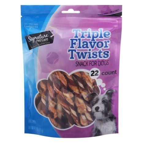Signature Pet Care Dog Chew, Triple Flavor Twists - 22ct