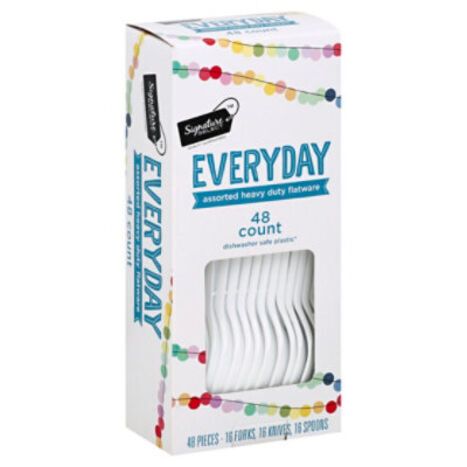 Signature Select Flatware Everyday Assorted Heavy Duty (16 Forks 16 Knives 16 Spoons) - 48 Count