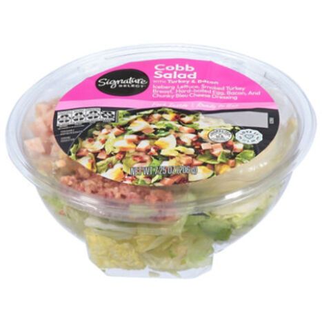 Iceberg Lettuce, Bleu Cheese Dressing (Water, Soybean Oil and/or Canola Oil Distilled Vinegar Bleu Cheese [Pasteurized Milk, Cheese Cultures, Salt, Enzymes, Penicillium Roqueforti, Cellulose {to Prevent Caking}, Natamycin (Mold Inhibitor)), Sugar Egg Yolk, Salt, Dehydrated Buttermilk Cornstarch, Contains Less than 2% of Lemon Juice Concentrate, Natural Flavors Spices [Contains Mustard], Xanthan Gum) Smoked Turkey Breast (Cured with: Water, Contains 2% or Less of Salt, Dextrose, Modified Corn Starch, Sodium Lactate, Sodium Phosphate, Carrageenan, Natural Flavoring, Sodium Diacetate, Natural Mesquite Smoke Flavor Ascorbic Acid, Sodium Nitrite, Citric Acid), Egg (Hard Cooked Eggs, Citric Acid, Sodium Benzoate and Nisin Preparation [as Preservatives)), Bacon (Cured with Water, Salt, Sodium Phosphates, Sodium Erythorbate, Sodium Nitrite, May Also Contain: Sugar Brown Sugar and Natural Smoke Flavor).