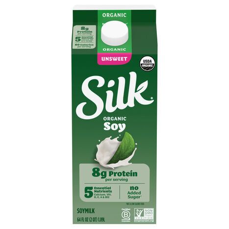 Silk Organic Unsweet Dairy Free Vegan Soy Milk - 64 Fluid Ounces