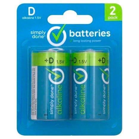 Simply Done Batteries, Alkaline, D, 2 Pack - 2 Count