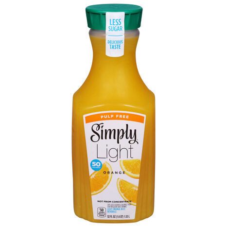 Simply Juice Beverage, Light, Pulp Free, Orange - 52 Fluid Ounces
