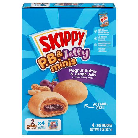 Skippy PB & Jelly, in White Bakery Bread, Peanut Butter & Grape Jelly, Minis - 4 x 2 Ounce Pouches