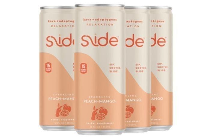 Slide Kava Herbal Supplement - Sparkling Peach-Mango Kava and Adaptogens - 12oz Can (4 Pack)