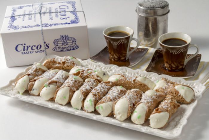 Hand made fresh Circo's cannoli shell filled to order with our signature ricotta Cream with Chocolate chips and topped with powder sugar. About 14 mini cannolis in a pound.