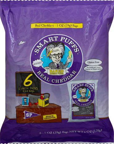 Smart Puffs Cheese Puffs, Baked, Real Cheddar, Lunch Packs - 6 x 1 Ounce