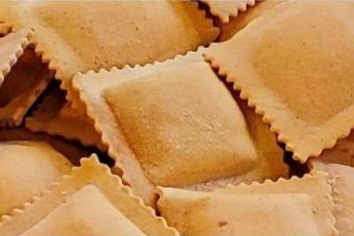 Creamy whole milk Ricotta blended with smoked Mozzarella, Romano cheese, and sweet basil wrapped in a roasted red pepper shell. Suggested Sauces: Italian Sausage Creole*(spicy), Traditional Meat, Pesto. One package is approximately 18 raviolis. Two packages will be 4-6 servings.
