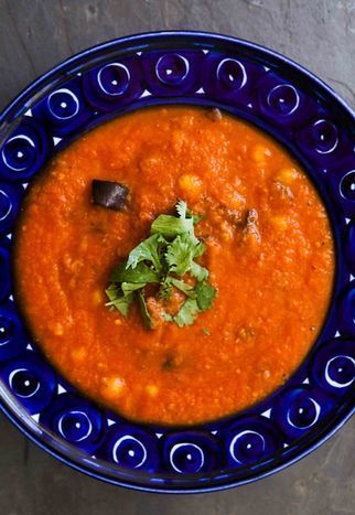 Smoky Roasted Eggplant Tomato Soup with Organic Quinoa