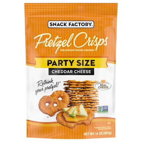 Snack Factory Pretzel Crisps, Cheddar Cheese, Party Size - 14 Ounces