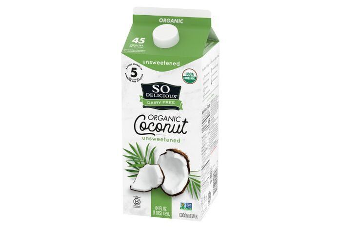 45 calories per serving. See nutrition information for saturated fat content. USDA Organic. Certified Organic by Quality Assurance International. Dairy-free. Certified Gluten-free. Certified vegan by Vegan.org. Lactose-free. Soy-free. A good source of 5 essential vitamins and minerals. No added sugar. Carrageenan-free. No preservatives. Not a low-calorie food. See nutrition facts for information on calories, sugar and saturated fat. Non-GMO Project verified. nongmoproject.org. Follow our journey at Transparency. Is your mouth watering yet? Find this and other full recipes at [website]. To learn more, or call [phone number]. Certified B Corporation. At So Delicious, we believe in nourishing people and the planet. That's why we joined the B Corp movement. We're proud to use our brand as a force for good by paying fair wages to our employees, committing to reduce our environmental impacts and more. Rainforest Alliance Certified packaging. FSC: Mix. The best things in life are dairy-free.