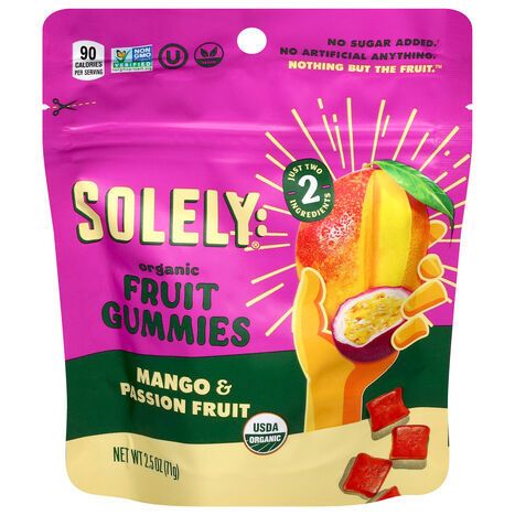Solely Fruit Gummies, Mango & Passion Fruit, Organic - 2.5 Ounces